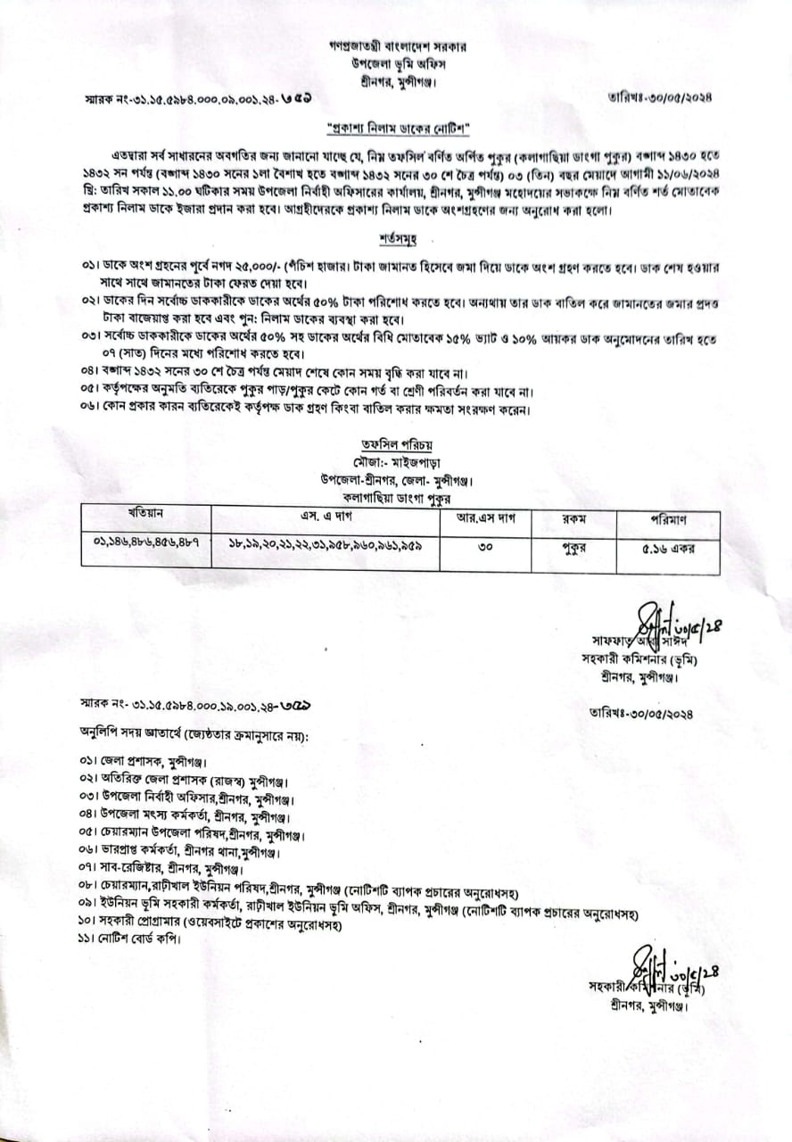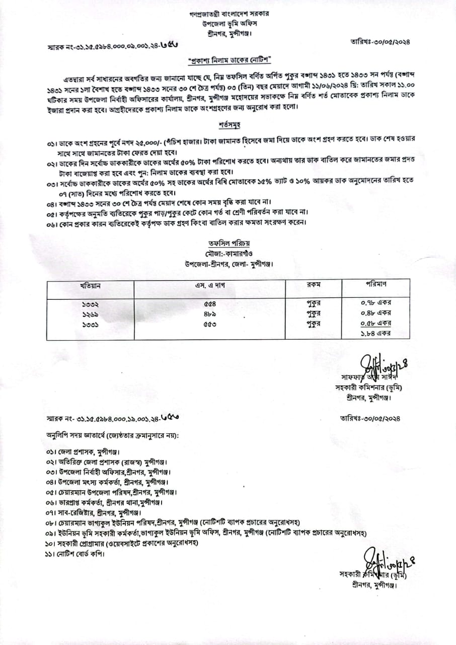 | ২ | প্রকাশ্য নিলাম ডাকের নোটিশ | | ৩১-০৫-২০২৪ | দেখুন | |